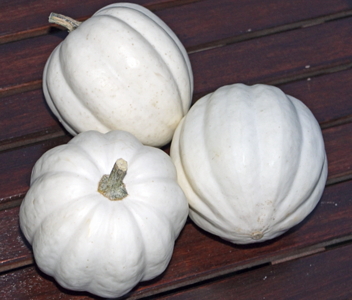 Baltasis perlas yra apvalios formos, o vaisiai yra balti su iškilimais. Vienas moliūgas sveria apie 0,5 kilogramo. Dėl puikaus skonio ir dekoratyvumo labai vertinami. Augimo forma kaip krūminio augalo. Kaip ir visi balti moliūgai, White Pearl turėtų būti laikomi tamsoje, kad būtų išsaugota balta spalva.