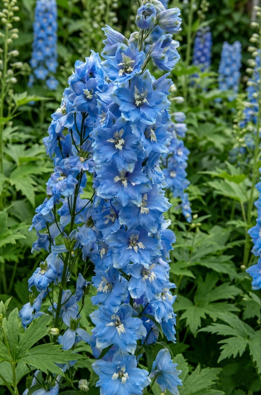 Skaisčiai mėlynas, su kontrastingu baltu viduriu, pentinis. Žiedai pusiau pilnaviduriai. Tvirtas stiebas gausiai aplimpa žiedais, puikiai tinka skinti. Priežiūros mažai, žiemoja puikiai. Dėl geresnio dygimo sėkloms naudingas šaltasis periodas. Sėklų pakelį palaikyti šaldiklyje 1-2 savaites. Sėjimas paviršinis, lengvai užberiant vermikulito, ar substrato. Anksčiau pasėjus, pražys dar šiais metais.