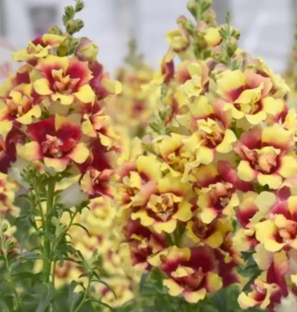 Naujas žioveinis su plačiais dvigubais žiedais ant stiprių stiebų. Ypatingas spalvų derinys. Doubleshot serija primena „Madame Butterfly“ veislės tipą.