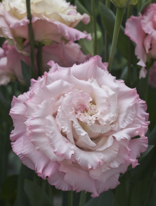 Žiedai dideli, pilnaviduriai, lyg suklostuoti raukiniai. Tvirti stiebai, gerai šakojasi.