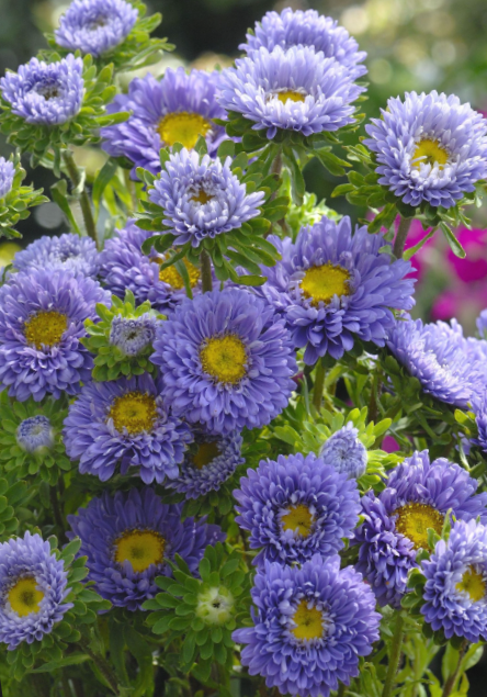Žavingi, mažais žiedeliais, gražios formos ir spalvos, puokštiniai astrai. Ilgai laikosi vazoje.