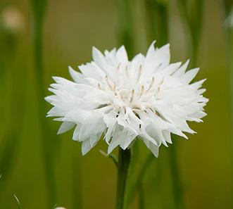 Aukšta balta rugiagėlė, puikiai sukutianti kontrastą kitų spalvų rugiagėlėms. Kartais žiedo centre gali būti rausvos spalvos atspalvis, ar gelsvos. Žiedlapiai tinka džiovinti konfeti gamybai. Taip pat yra valgomi.