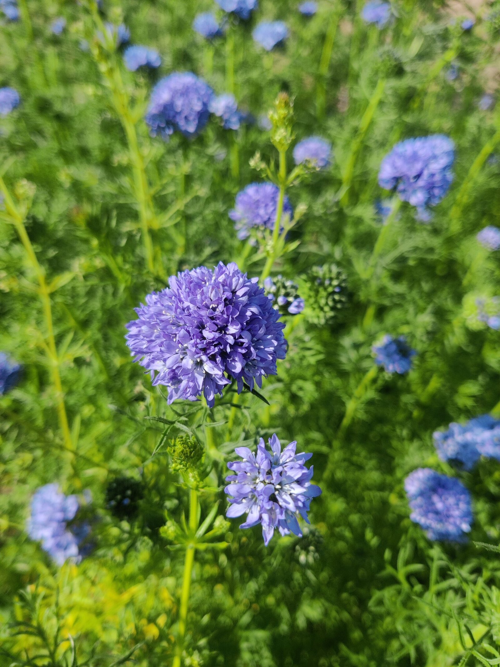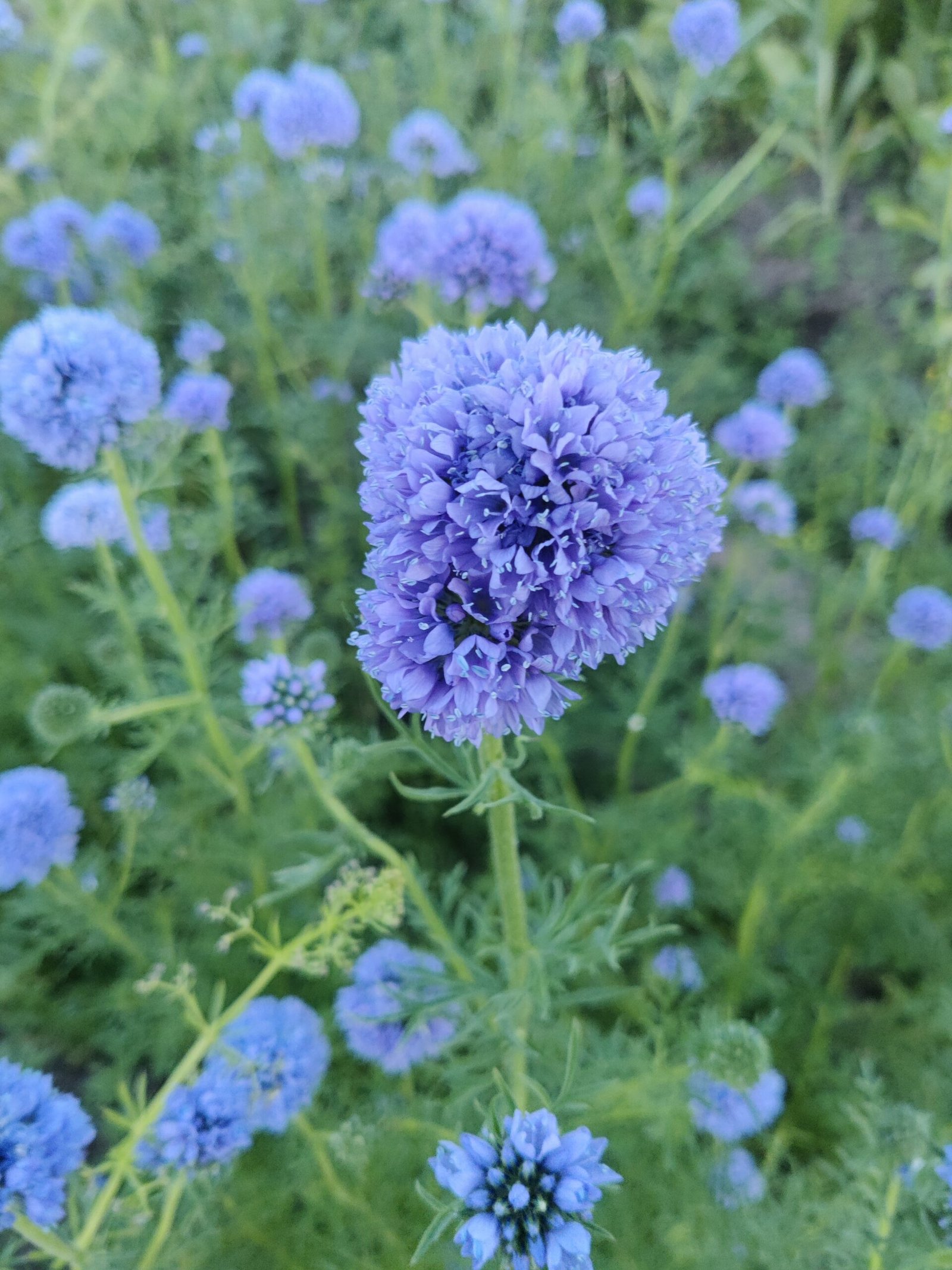 Violetiškai mėlyna gilija. Ši atmaina ‘Gilia leptantha’ turi didesnius žiedus palyginti su ‘Gilia capitata’. Stiebai aukšti ir tvirti. Nuskynus pražysta dar kartą tik jau smulkesniais žiedais.