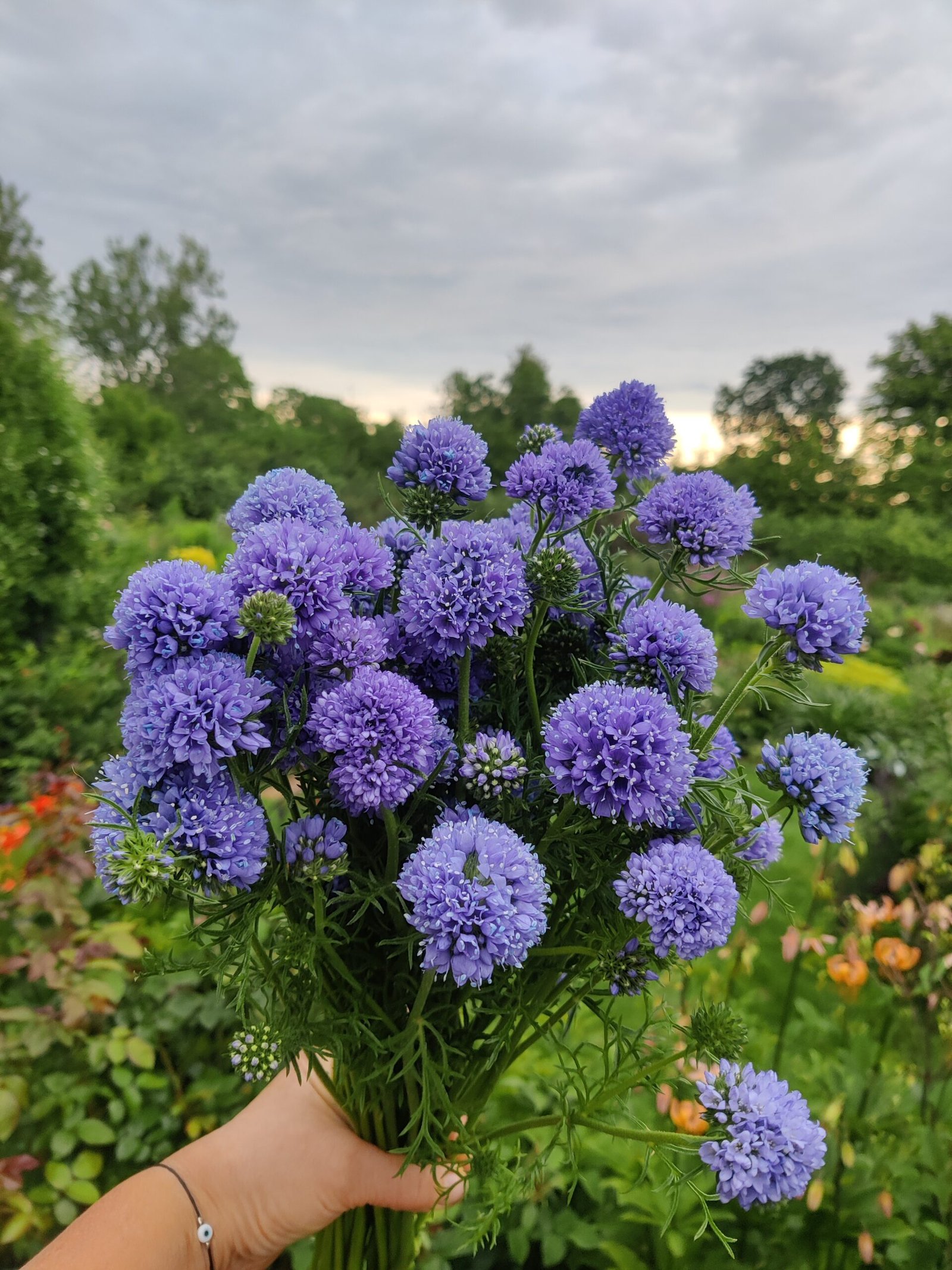 Nustebino ši paprasta vienmetė gėlė, nuskinta, savo ilgu žydėjimu vazoje. Smulkūs mėlyni žiedeliai nepastebimai iškrenta ir lieka ryškiai žalias ( įvairių formų) bumbulas, kuris stovi labai ilgai, kol sudžiūna.